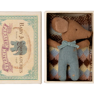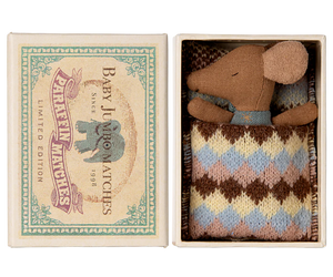 Sweet dreams and good morning! This sweet finger-size Maileg baby boy is soundly sleeping on one side and wide awake on the other, part of the collectable Maileg range. A high quality gift that will be cherished, with an adorable outfit and blanket included.