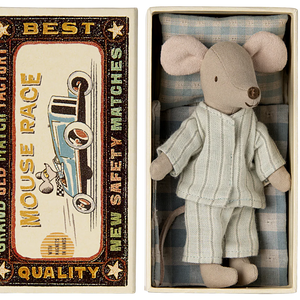 An adorable big brother mouse by Maileg. The mouse comes tucked away in a high quality box with his own bed, pillow and thick blanket. He gets a good rest at night to be bright and ready the next day, for lots of playing and fun. This is a unique gift that will be cherished for a long time to come.